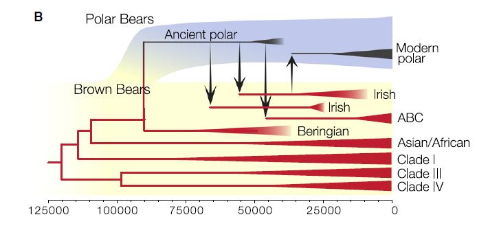Kumar, V., Lammers, F., Bidon, T., et al. 2017. The evolutionary history of bears is characterized by gene flow across species. Scientific Reports 7:46487