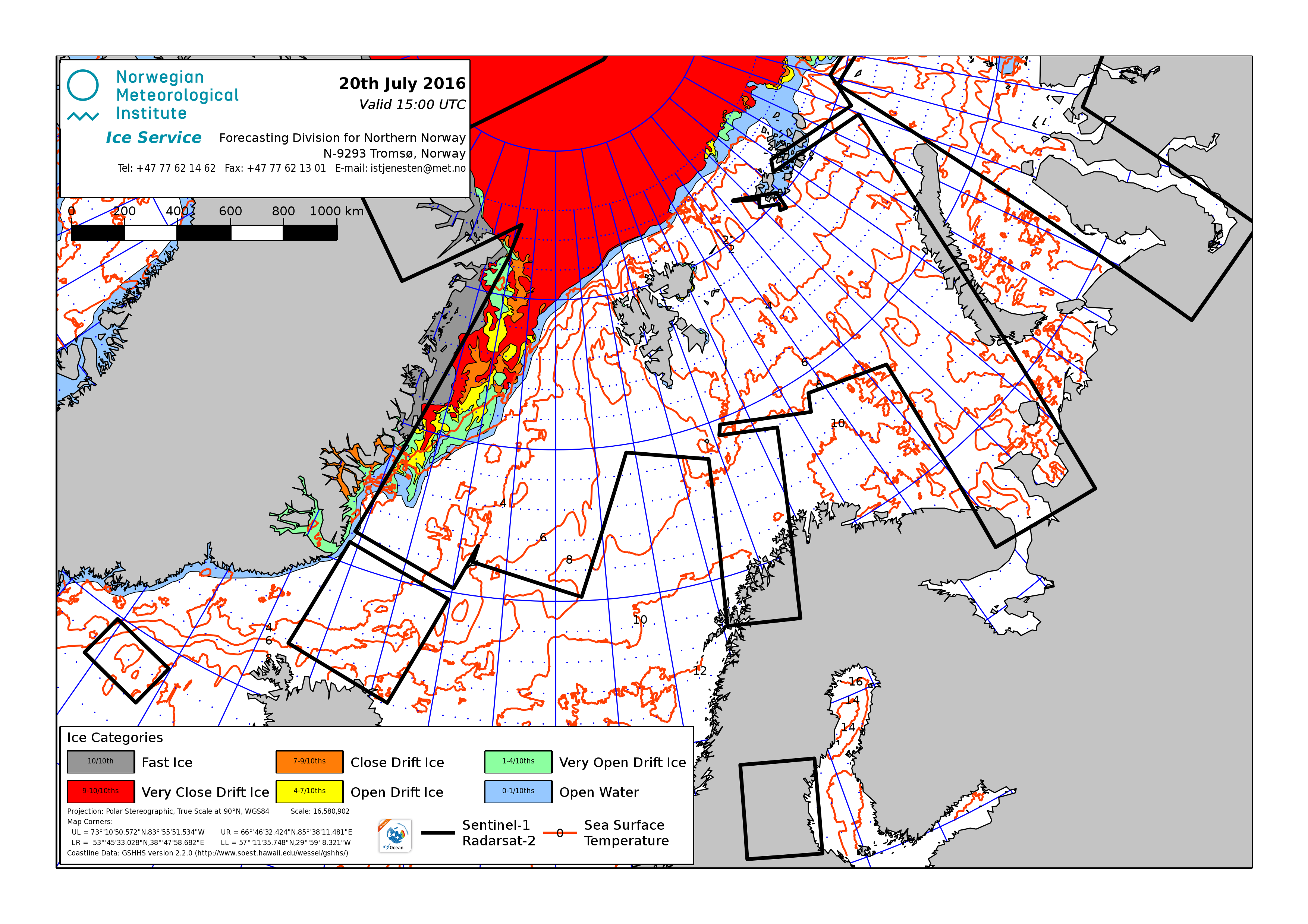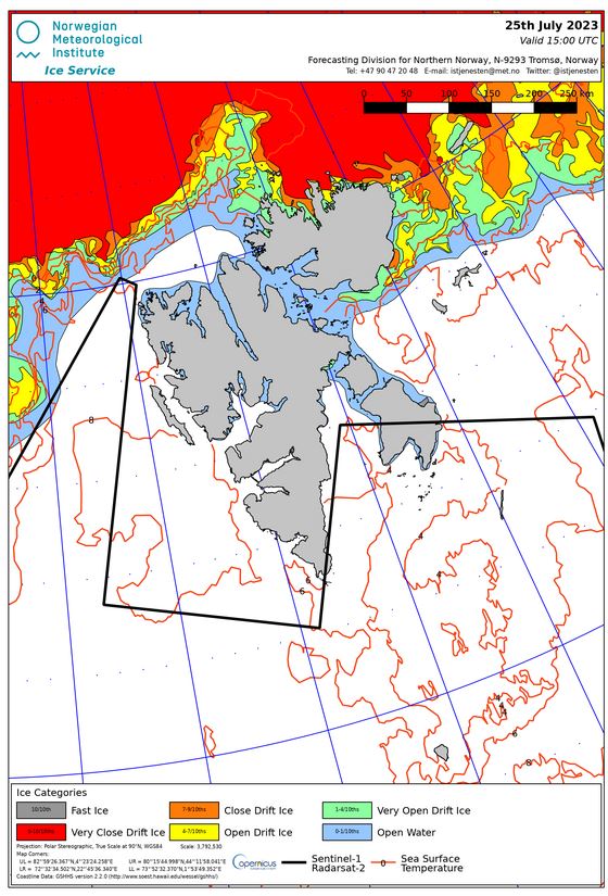 Overall, the Barents Sea polar bear subpopulation region still has concentrated pack ice to the north and around Franz Josef Land in the east: