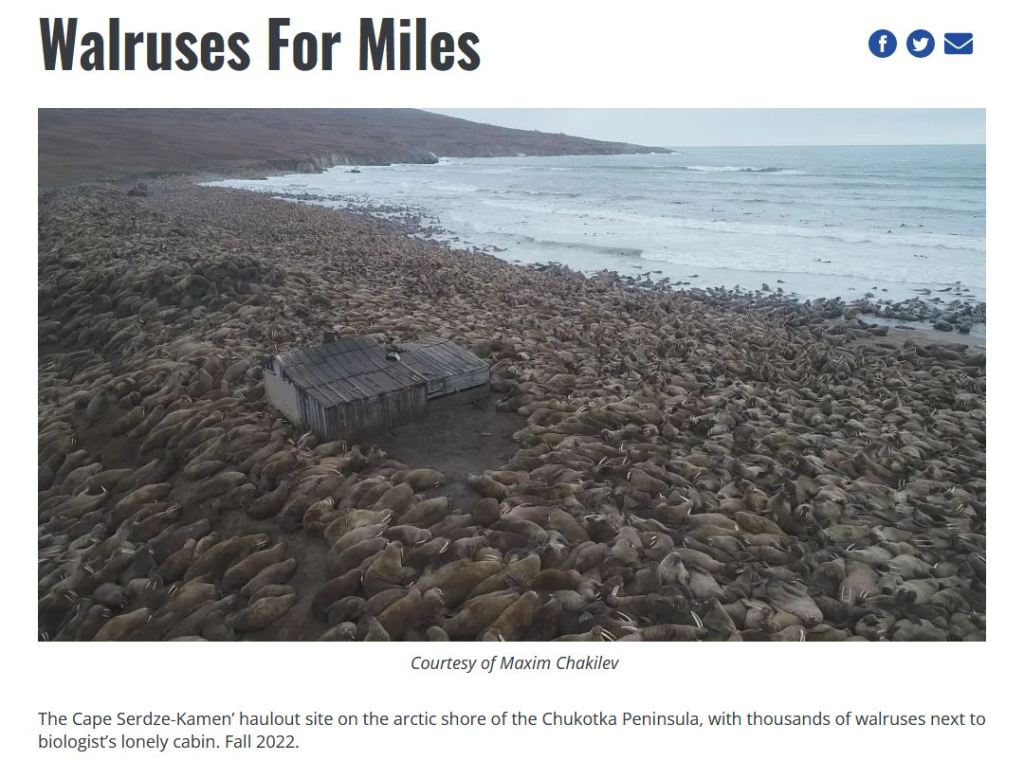 Quote from The New Yorker (21 November 2022) “Where walruses go when sea ice is gone,” Arbugaeva also revealed [my bold]: