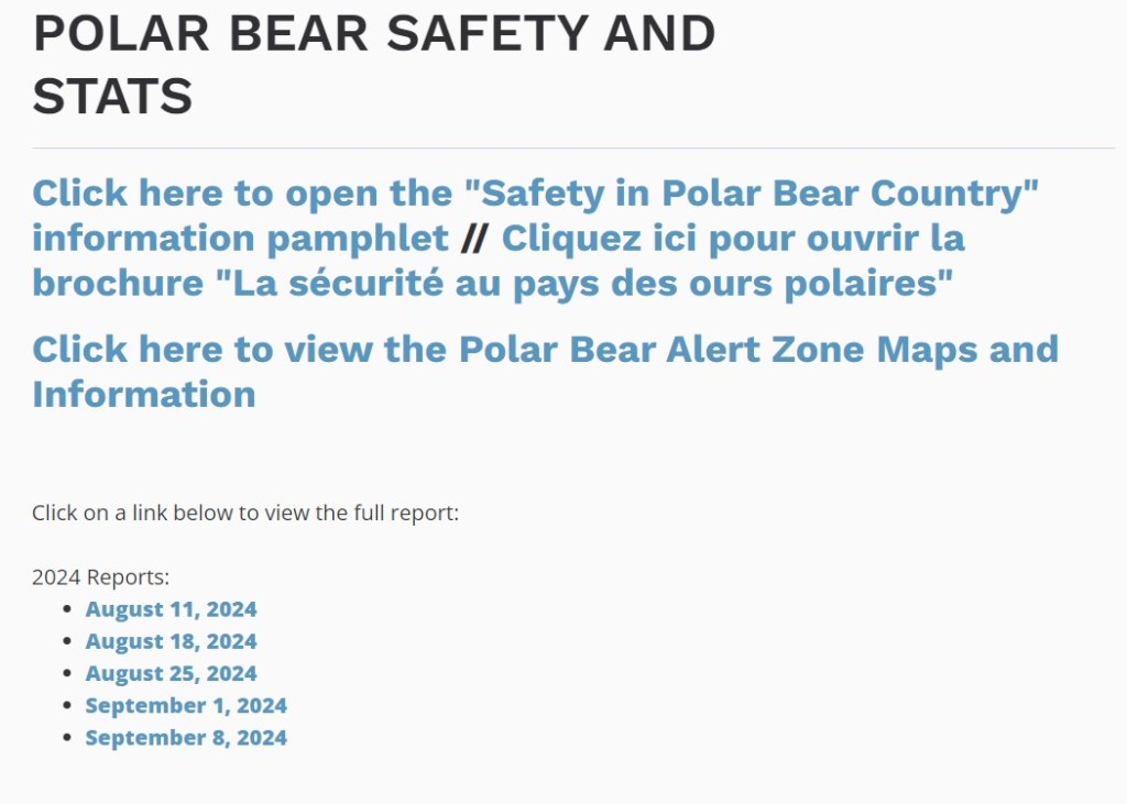 We know transparency’s gone out the window for many public officials, but still: Since early August, I’ve been checking daily for Problem Polar Bear Reports issued by the Churchill Polar Bear Alert Program managed by Manitoba Conservation. This morning (12 September), five reports were posted at once on the Town of Churchill website, dating back to first of the season for the week of August 5-11, see image below.