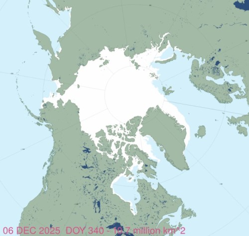 September sea ice extent has continued to stall, rather than plummet as predicted (Table 1: eleventh lowest average September extent since 1979; 4.75 mkm2), although they don’t come out and say so. NSIDC has stopped producing monthly sea ice reports due to budget cuts in late September 2025.