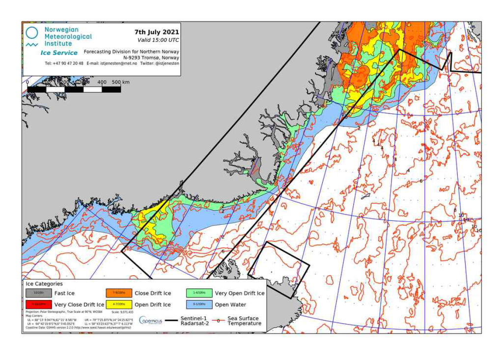 Any bear causing problems in this region would have just come off the ice, since three weeks ago there was plenty of ice available offshore a bit to the north (see chart below for 7 July). Virtually all bears are at their best condition at this time of year, except for young, inexperienced bears or those that are sick or injured. Warm temperatures would not be causing any bear to be desperately looking for food unless it was desperate for some other reason (sick, injured, or an under-nourished young bear). However, nothing is stated in this report about the physical condition of the bear, its approximate age or its sex, even though it has been seen multiple times. Young male bears, for example, are far more likely to become problems near communities than any other age class (Wilder et al. 2017), because these bears have to compete with older, larger bears to keep whatever seals they manage to kill.