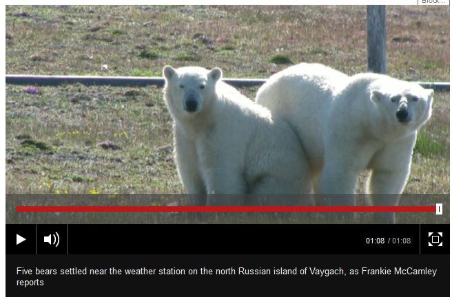 Recent September 1st stories by CNN and the BBC, based on a press release by WWF Russia on 27 August 2015, that five bears in the southern Kara Sea were hanging around a weather station and frightening workers there, apparently prompted chemist Crispen Halsall to make a nonsensical statement about polar bears being at their “hungriest” in summer (first here, reproduced here and picked up yesterday (September 5) by The Guardian here).