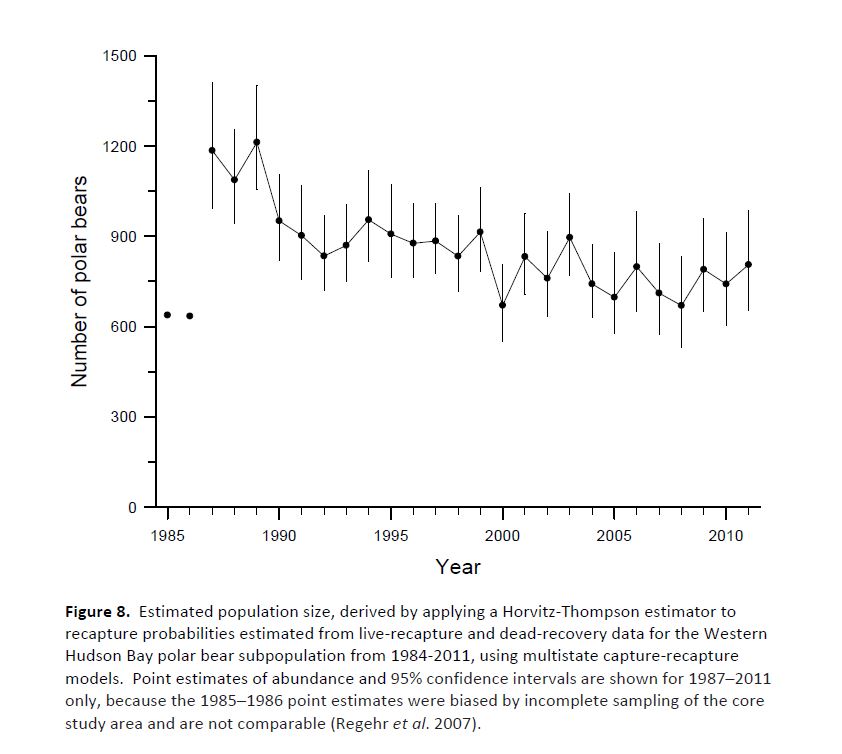 Hence totally expected that the New York Times would print someone’s unsupported claim that the polar bears of Churchill (part of the Western Hudson Bay subpopulation) are on the verge of extirpation due to lack of sea ice and other similar nonsense. Also not surprising to find that Canadian government biologist Nick Lunn used the occasion to again offer unpublished and misleading data to a reporter. However, this time it’s good news meant to sound like an emergency: if correct, the data he shared indicate polar bears are heavier now than they were in the 1990s and early 2000s.