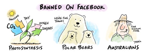 Is Facebook now an expert on polar bear conservation status? Apparently they have decreed themselves the last word for online content. There is a plan afoot to label anything that says polar bears are not being harmed by recent sea ice declines as ‘disinformation’ – but on whose authority? Thanks to Josh for the cartoon below.