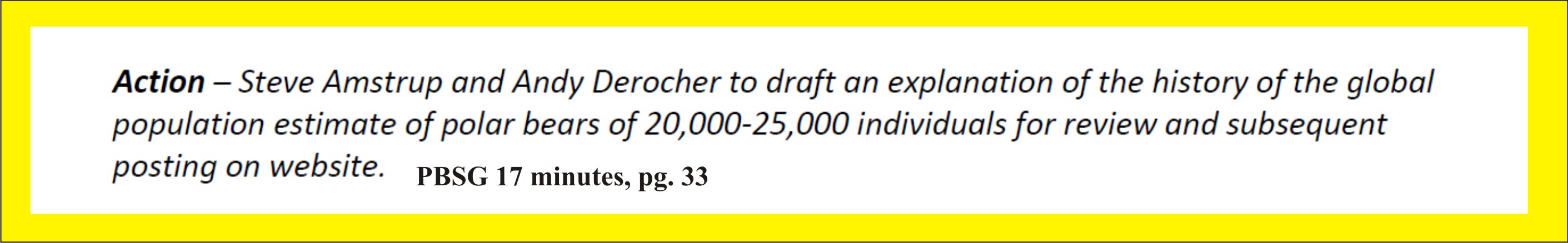 “K. Laidre summarized the need for the PBSG to do a better job of communicating accurate and balanced science about polar bears.” Pg. 28