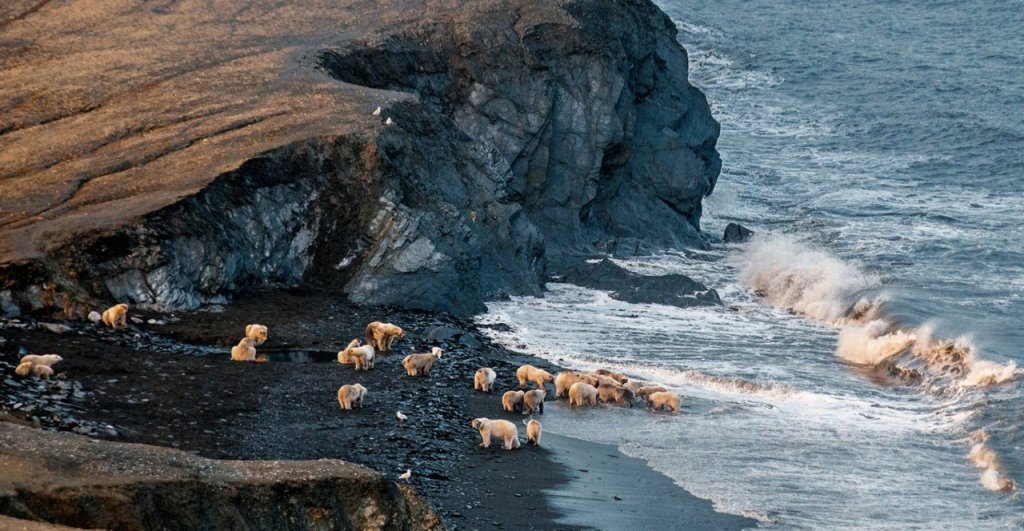 Many Chukchi Sea polar bears spend the summer on Wrangel Island and a survey there conducted by Russian researchers in 2020 reportedly collected data on a record 747 bears, well up from the 589 reportedly counted in 2017 by the same team (photo below is from 2015).